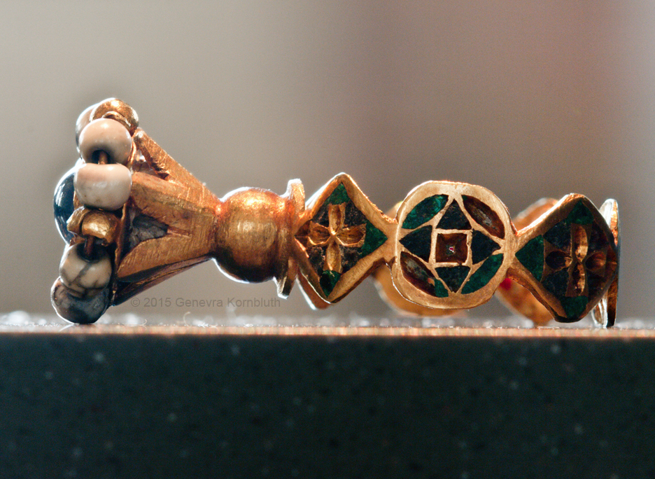 gold ring, sapphire/emeralds, prob. 13th c., p.c., which has its own page