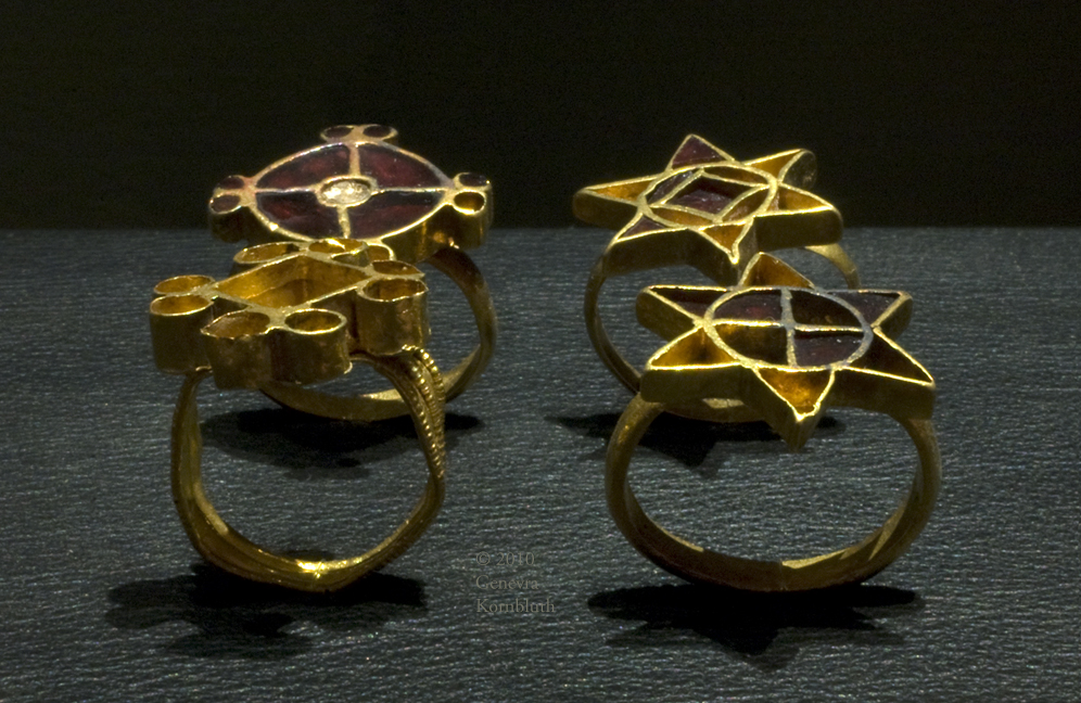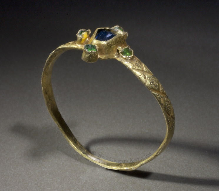 Byzantine ring, gold/enamel/sapphire, 6th-7th c., SMB. For bezel see Berlin.