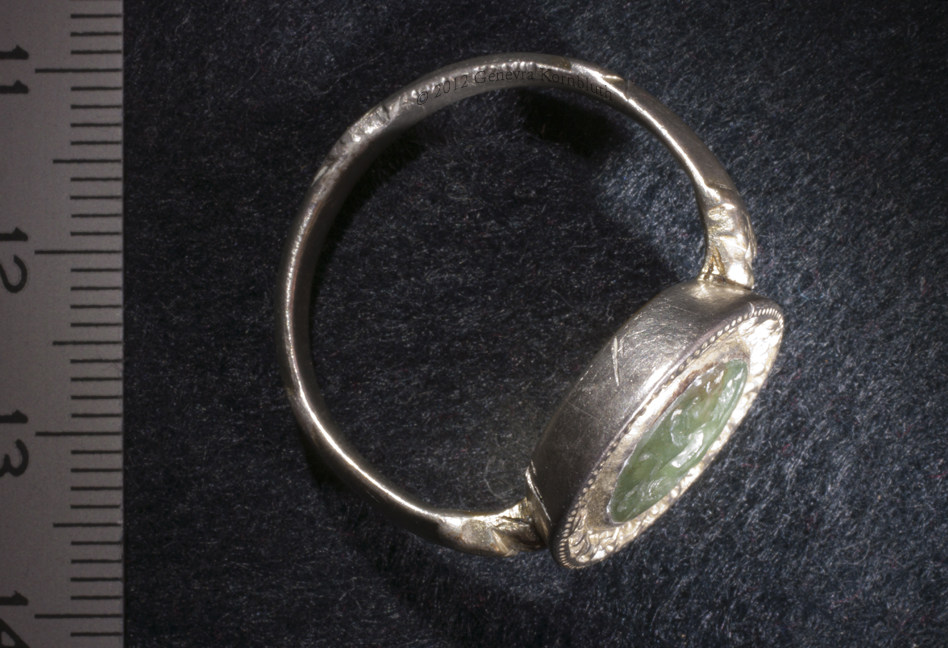 14th-15th c. silver seal ring with 1st c. BCE prase intaglio, HNM K.16.1871.7, which has its own page
