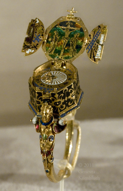 ring with watch and Crucifixion triptych with instruments of the Passion, Jakob Weiss, gold and enamel, c.1585, IMA 73.70.93. For other views see IMA.
