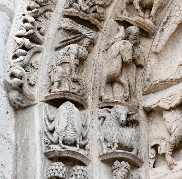 hunting: Chartres west façade center 1140s-c.1150. For more views see Chartres.