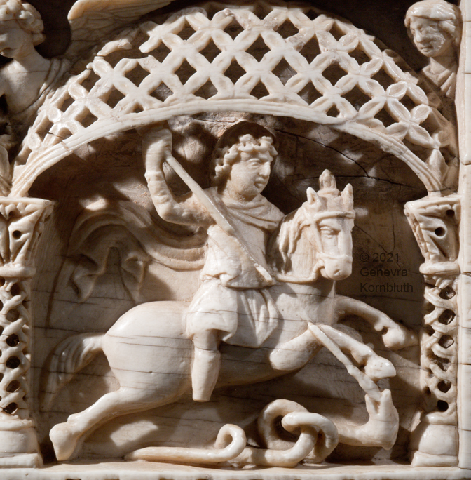 Sainte Chasse, 12th c. Byzantine ivory, Sens CT 143, which has its own page with more horses