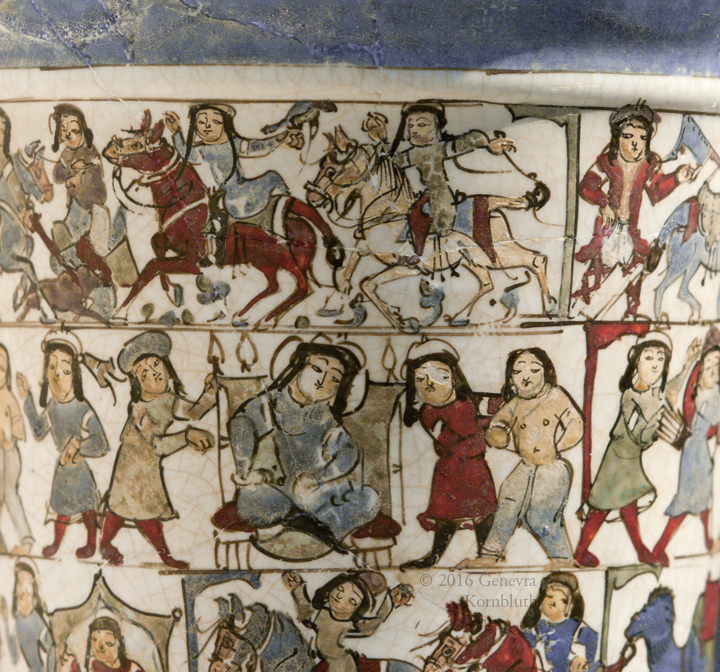 Mina'i ware beaker with Shahnama story, Iran late 12th c., Freer F1928.2. This work has its own page with more horses.