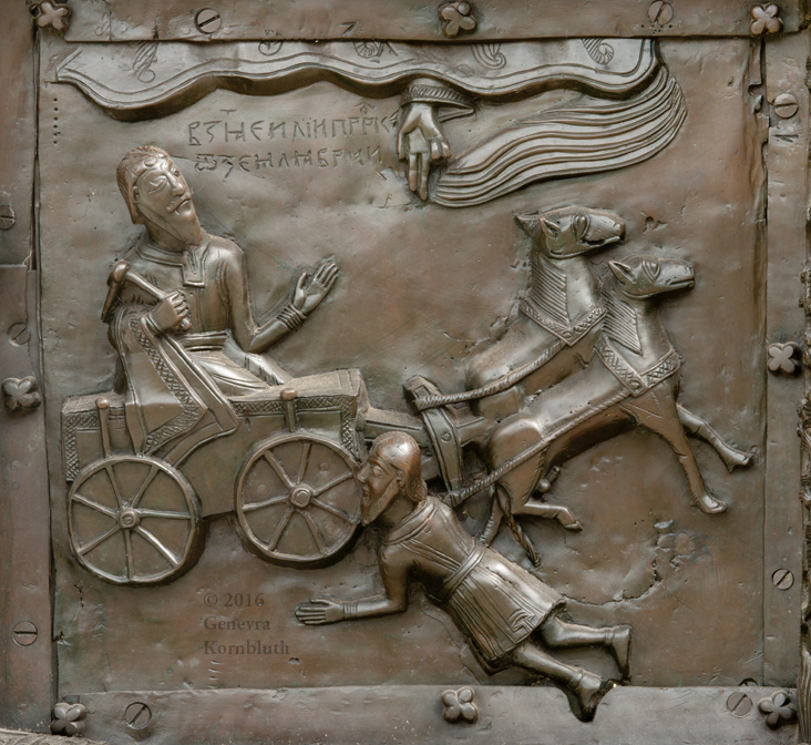 Ascension of Elijah: Novgorod cathedral doors, bronze, prob. 1152-54. The doors have their own page.