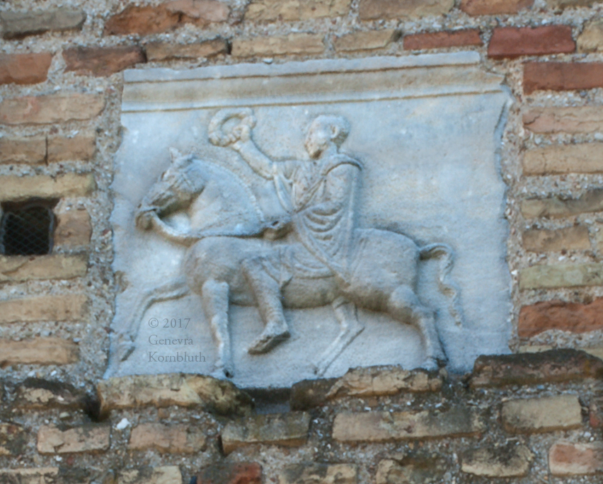 Roman relief (emperor?) on Ravenna, Orthodox baptistery, which has its own pages. This photo not available at high resolution.