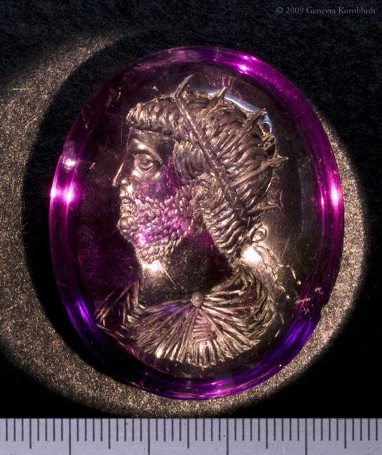 Gallienus (253-68), diademned bust, detail, amethyst, BM 1925.7-15.3
