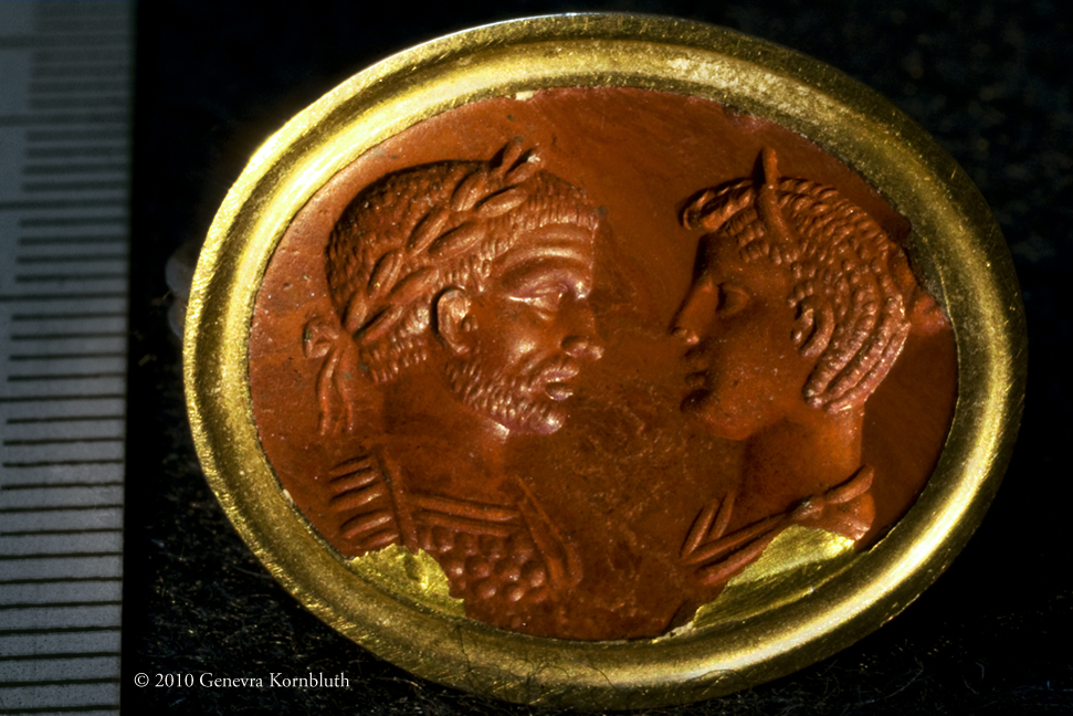Aurelian (270-74) and Ulpia Severina, red jasper, BM 1867.5-7.7541, Walters no. 2031