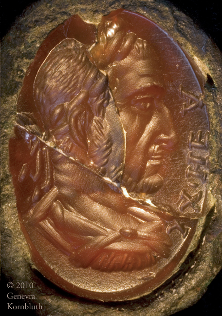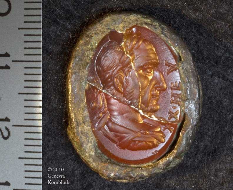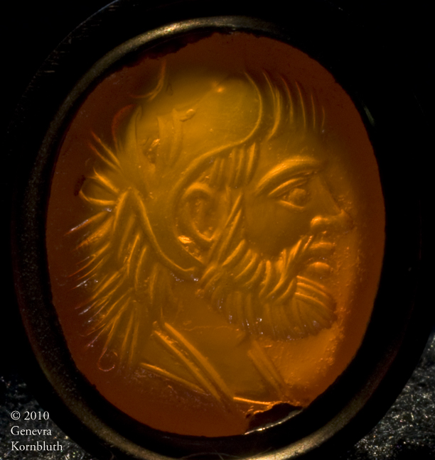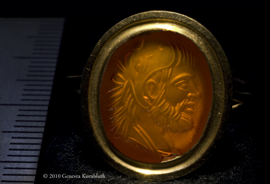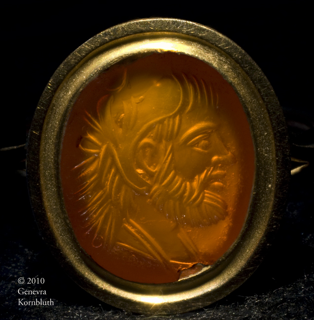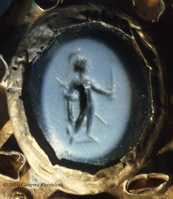 2nd-3rd c. carnelian intaglio, in 13th c. gold seal ring, HNM K.60.3.B, which has its own page