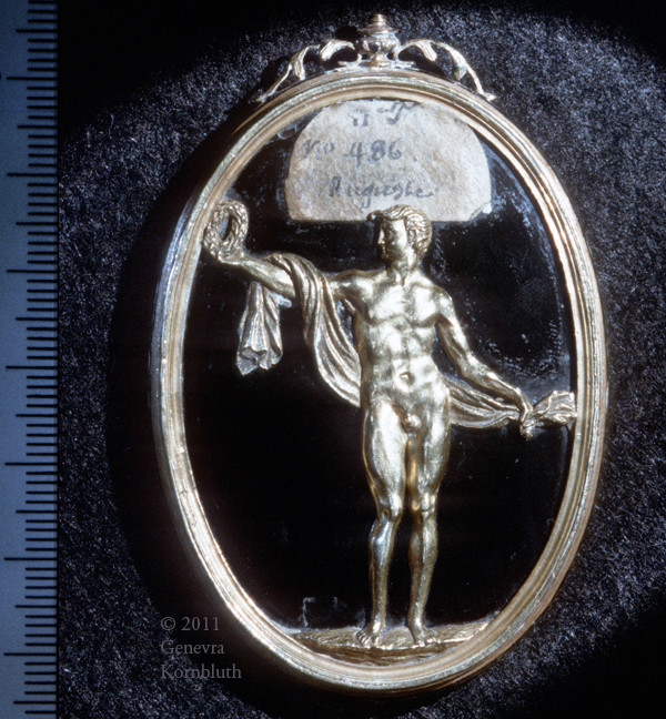 16th c. mount for Roman or 15th c. intaglio of Antoninus Pius: standing youth, gold, CdM Chab. 2093
