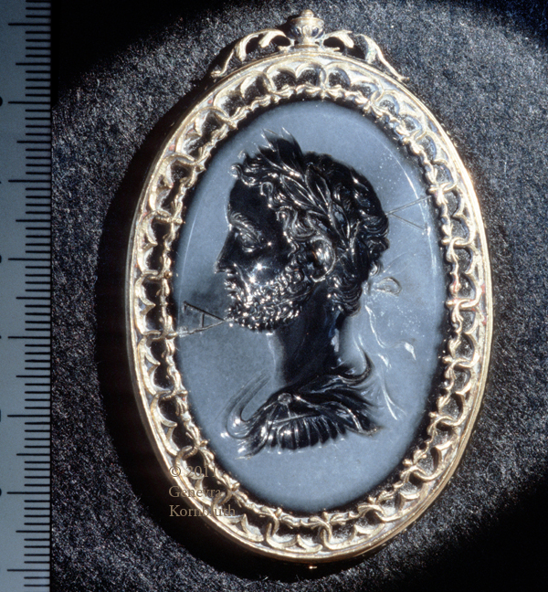 Antoninus Pius (131-68), Roman or 15th c. niccolo agate profile laureate intaglio in 16th c. gold mount, CdM Chab. 2093