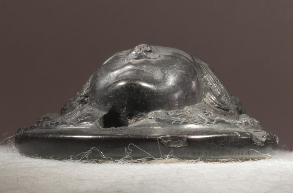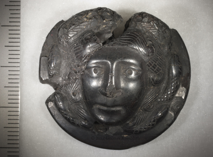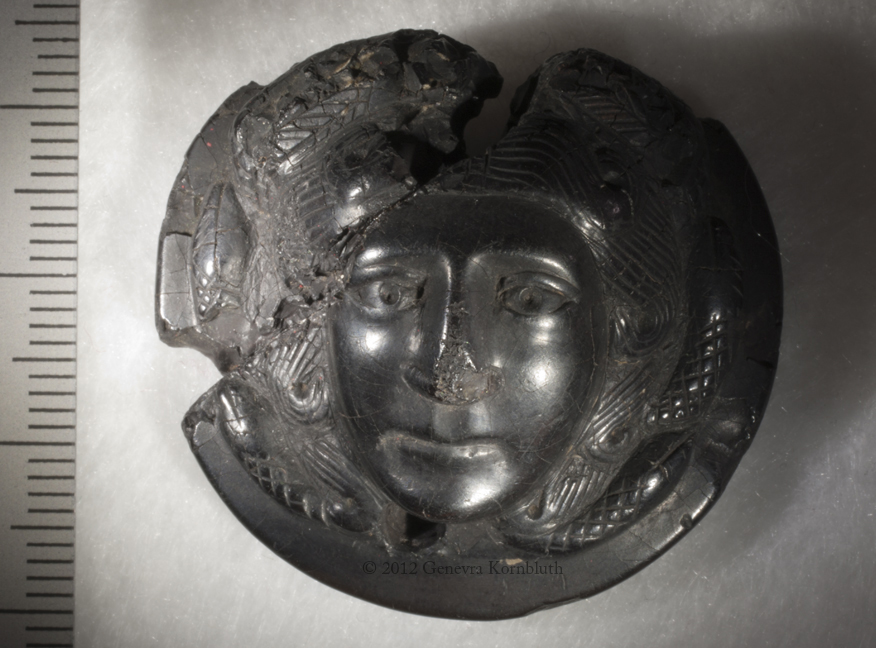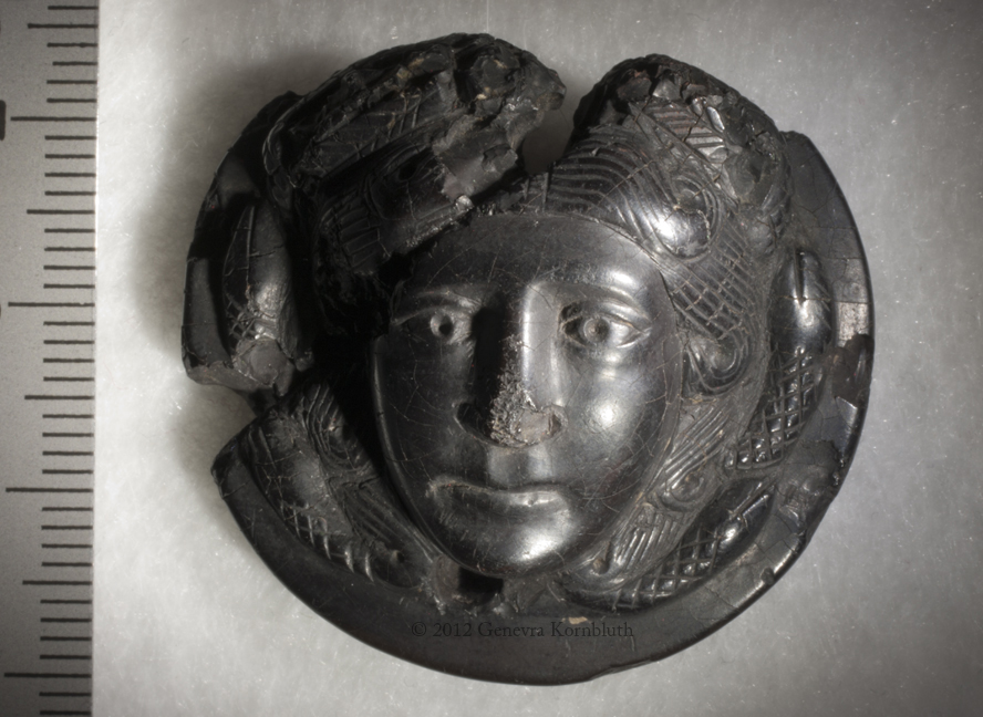 Historical Archive: Medusa pendant or phalera jet, 3.3 x 3.7 x 1.6 cm (1.3 x 1.46 x .63 inches) late third century, from Dalmatia Vienna, Kunsthistorisches Museum XI 1309