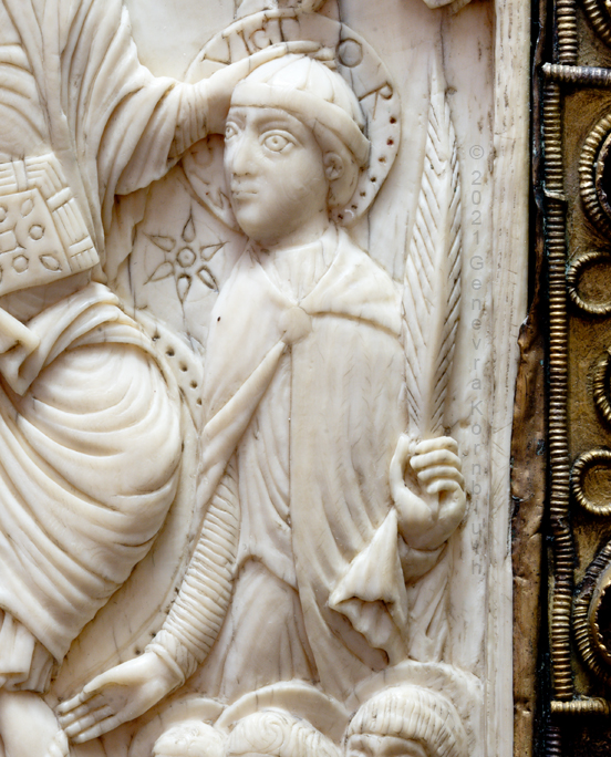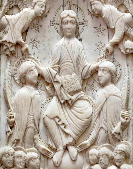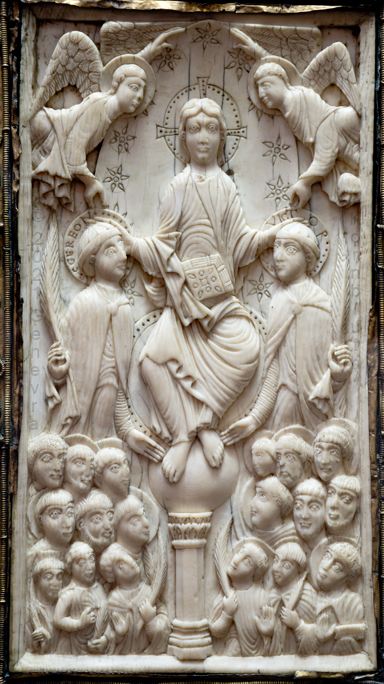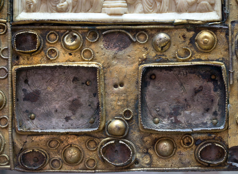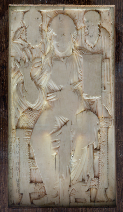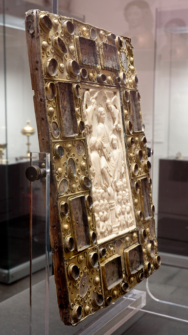 Historical Archive: Book Cover from St. Gereon cover oak with copper, originally gilt, 7th to 12th century ivory 17.7 x 9.8 cm (7 x 3.9 inches) ivory panel back Byzantine, 5th-6th century ivory panel front Cologne, around 1000 Cologne, Schnütgen Museum B98 |