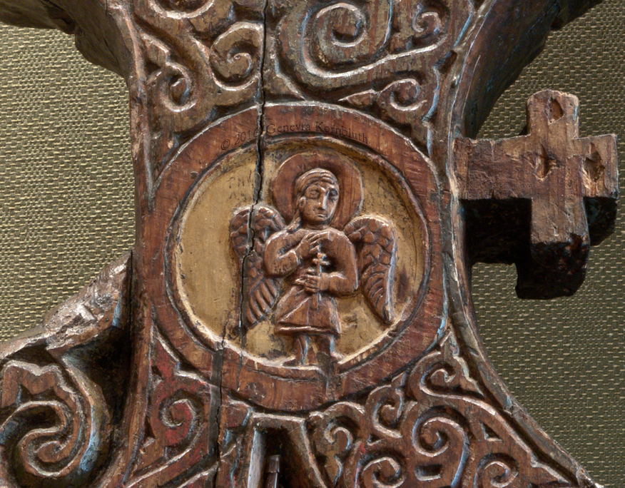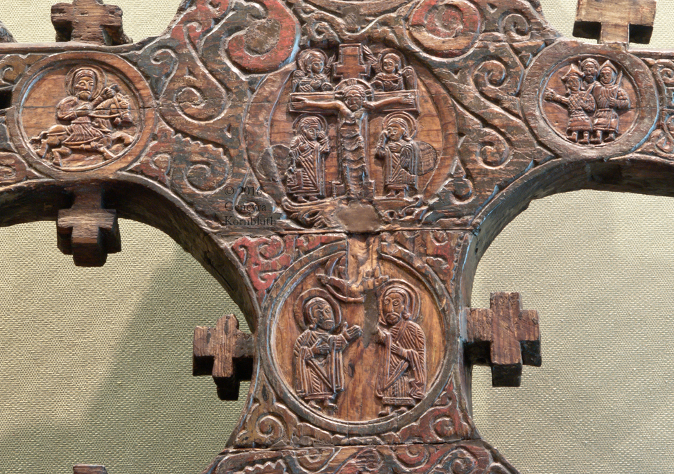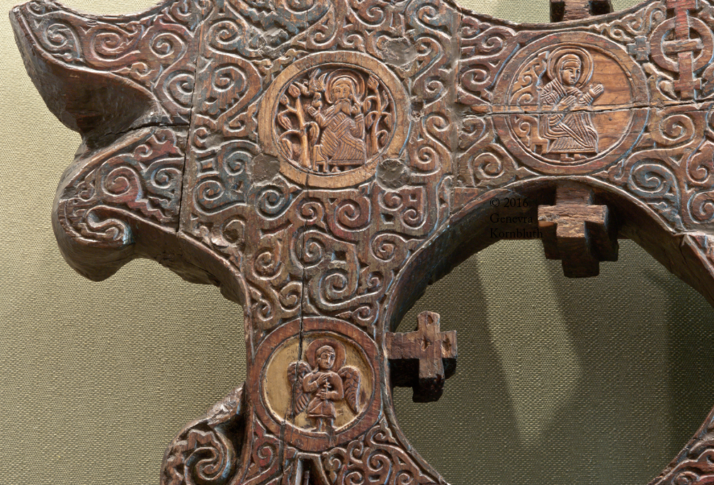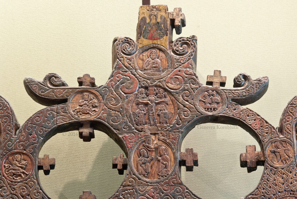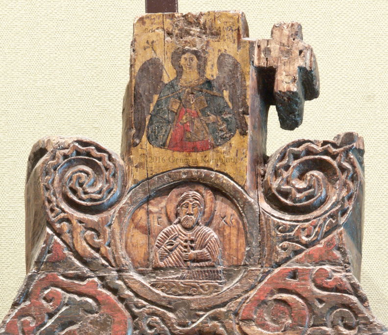 Lyudogoshch/Ludogoshchensky cross from the Church of Sts. Flora and Lavra on Lyudogoschaya Street, Novgorod Yakov Fedosov (signed), Novgorod 1359 wood and tempera, 211 x 116 x 11.3 cm Slavonic inscription on shaft: This cross was erected in the year of 6867 [1359], on the 12th day of June Lord, have mercy on all Christians, wherever they pray to you with faith and clean heart Support those of Lyudogoshch who erected this cross, and me, underwritten. Novgorod State Museum of History, Architecture, and Arts The Kremlin, Veliky Novgorod |