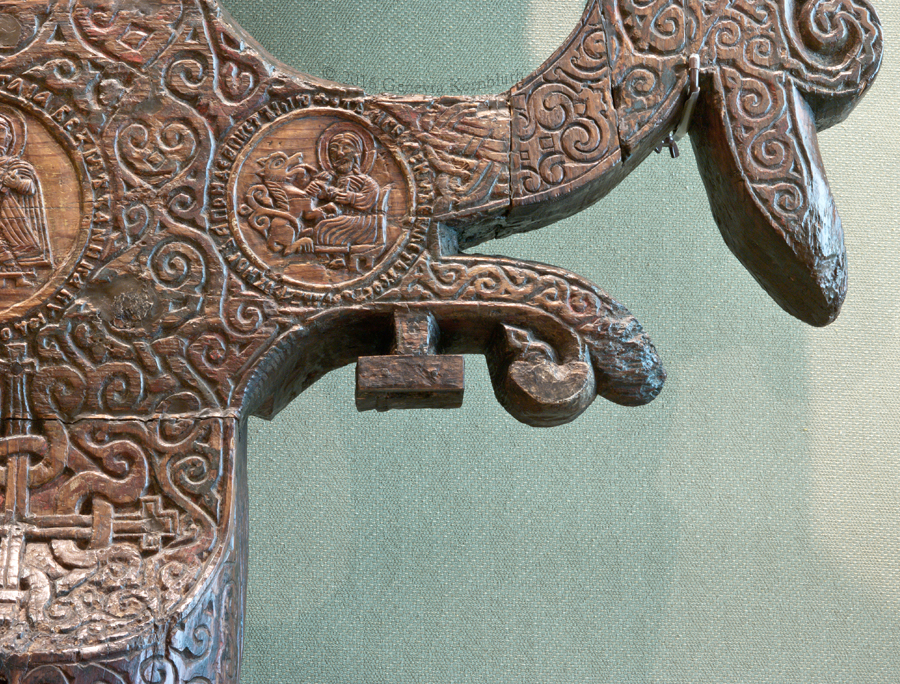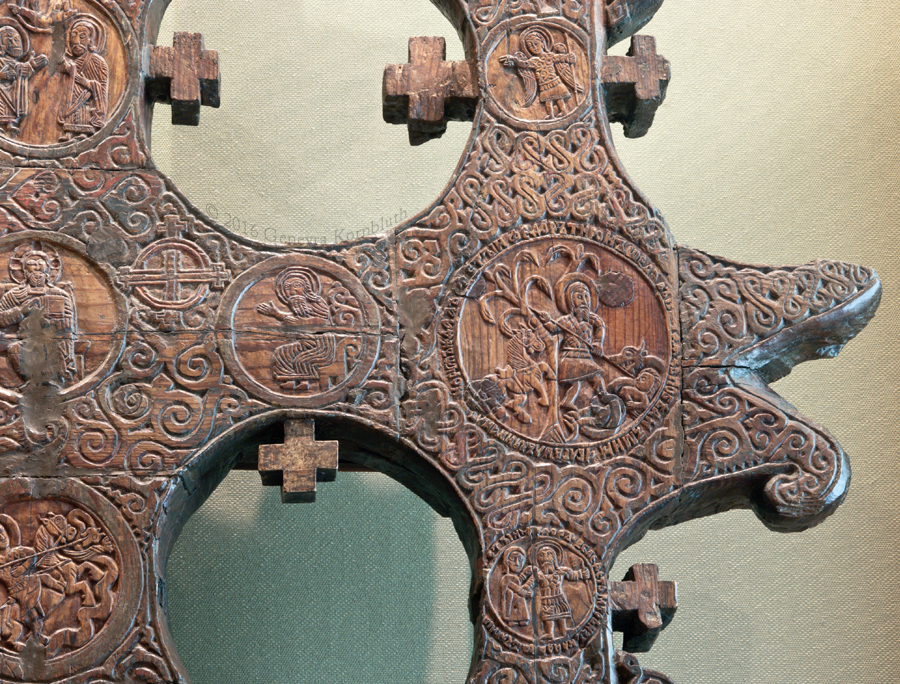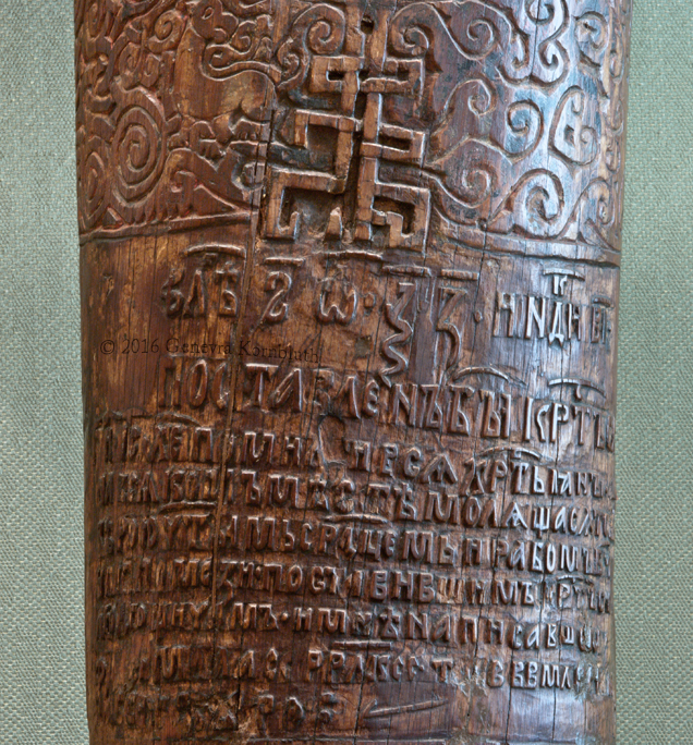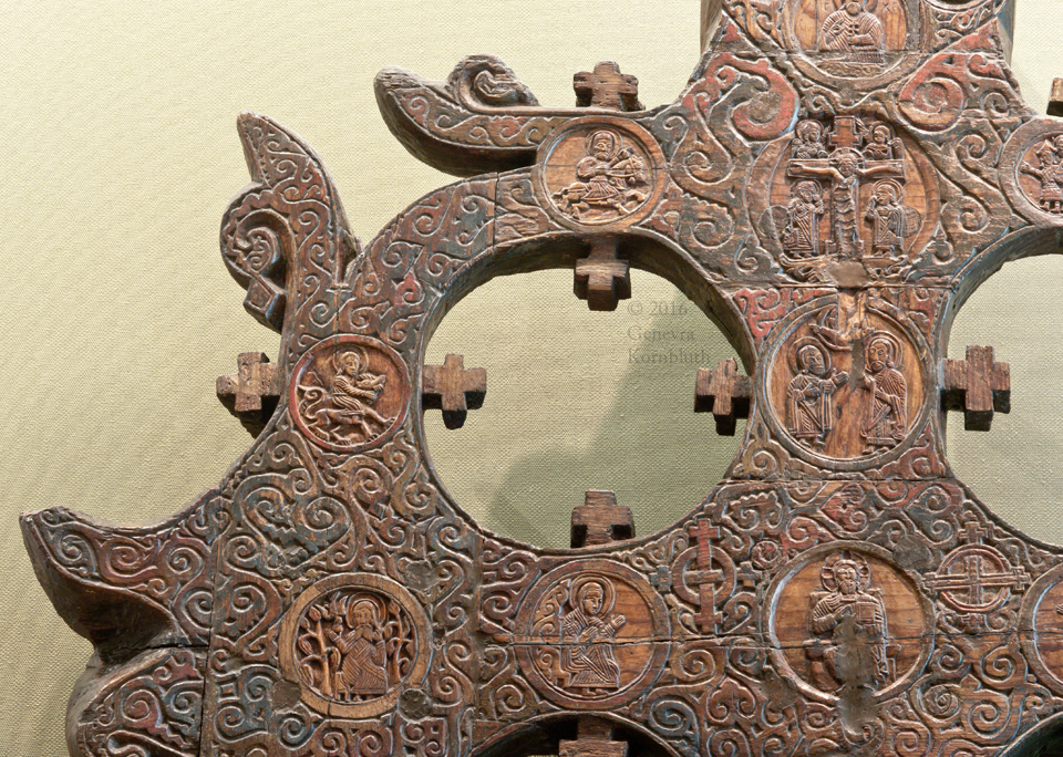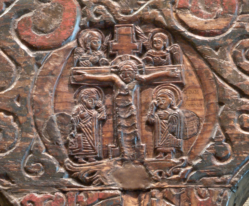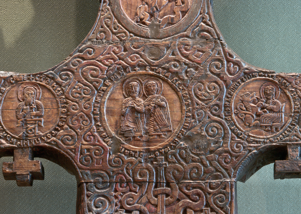 Lyudogoshch/Ludogoshchensky cross from the Church of Sts. Flora and Lavra on Lyudogoschaya Street, Novgorod Yakov Fedosov (signed), Novgorod 1359 wood and tempera, 211 x 116 x 11.3 cm Slavonic inscription on shaft: This cross was erected in the year of 6867 [1359], on the 12th day of June Lord, have mercy on all Christians, wherever they pray to you with faith and clean heart Support those of Lyudogoshch who erected this cross, and me, underwritten. Novgorod State Museum of History, Architecture, and Arts The Kremlin, Veliky Novgorod |