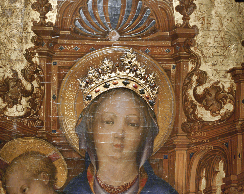 Historical Archive: Virgin and Child Enthroned Michele Giambono ((Michele Giovanni Bono, active Venice 1420, died 1462), c.1440-early 1450s tempera and gold on linden wood, 121.5 x 56.5 cm Budapest, Museum of Fine Arts 1029