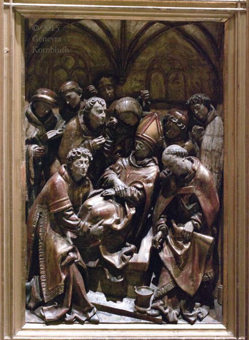Historical Archive: Life of St. Stanislaus the Bishop (d.1079) Triptych from a church in Pławno Krakow c.1510-20, painted and gilt limewood side wings each 145.3 x 46.6 cm, center 145 x 93 cm Warsaw, National Museum Śr. 18 |