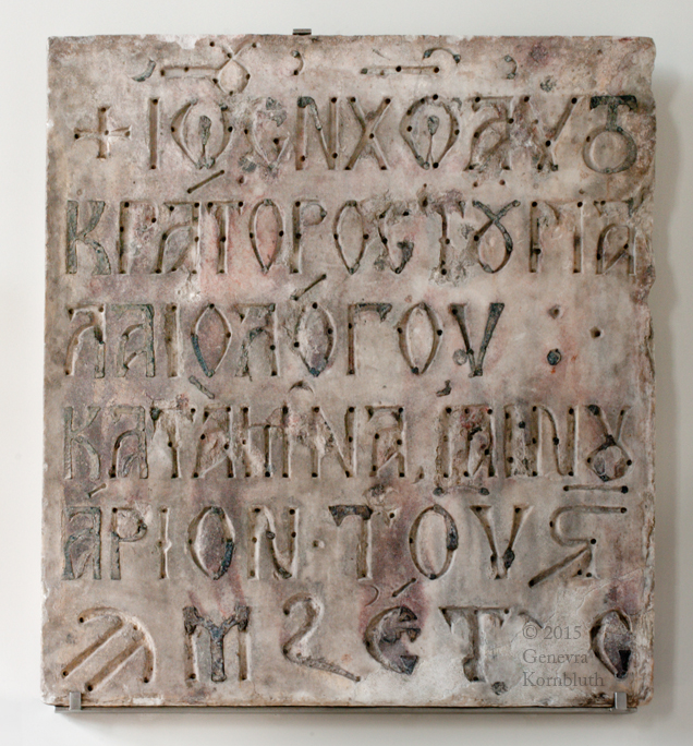 Greek inscription: repair to Constantinople city wall by John VIII. Palaiologos, 1439, marble with lead letters, SMBByz 6390