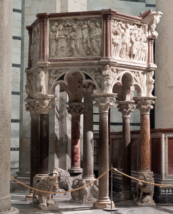 Giovanni Pisano pulpit 1302-10 (parts remade 1926), which has its own page, in Pisa cathedral