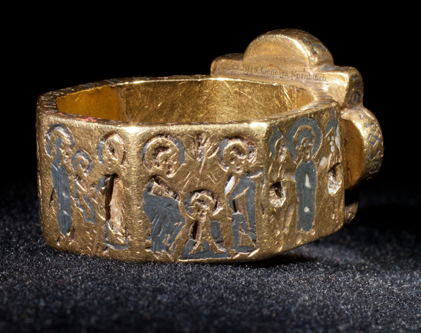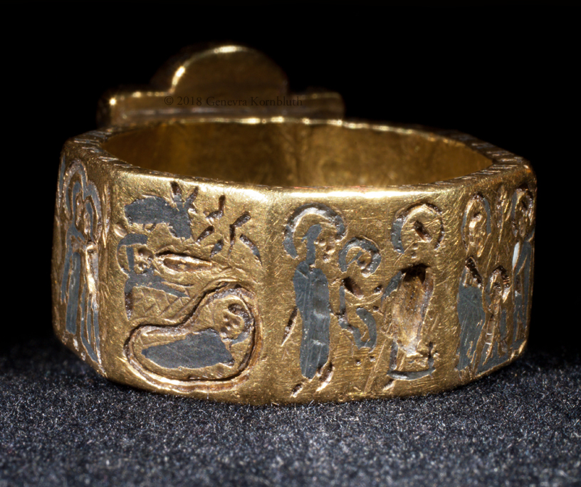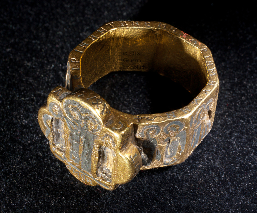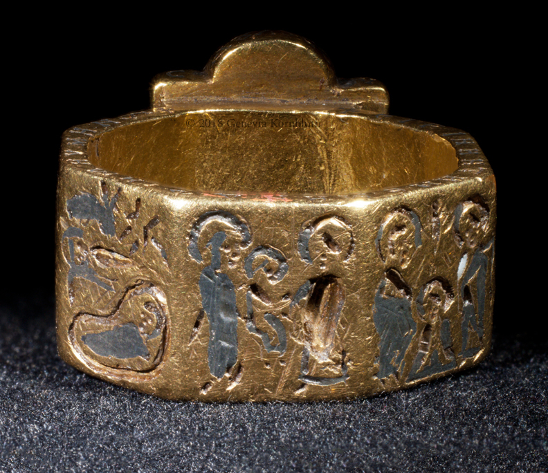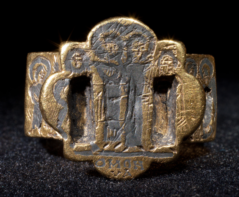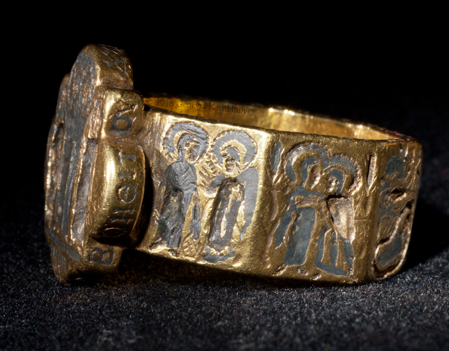bezel: bride and groom (missing inlay) crowned by Christ and Mary or Ecclesia; inscription: Harmony