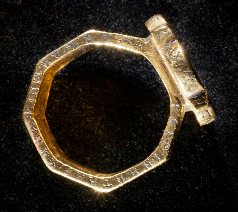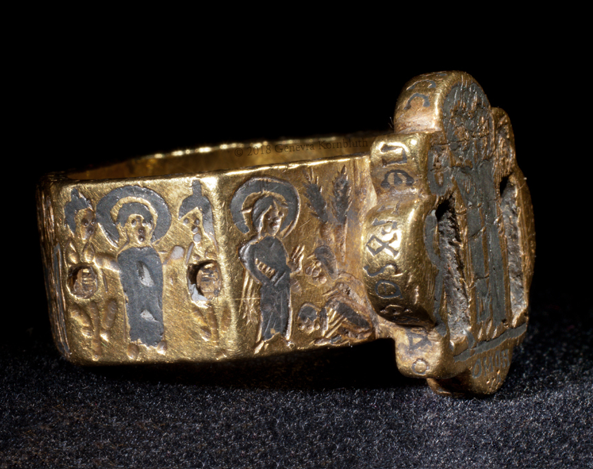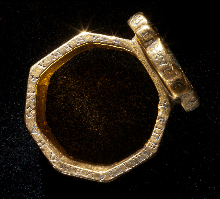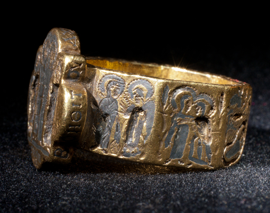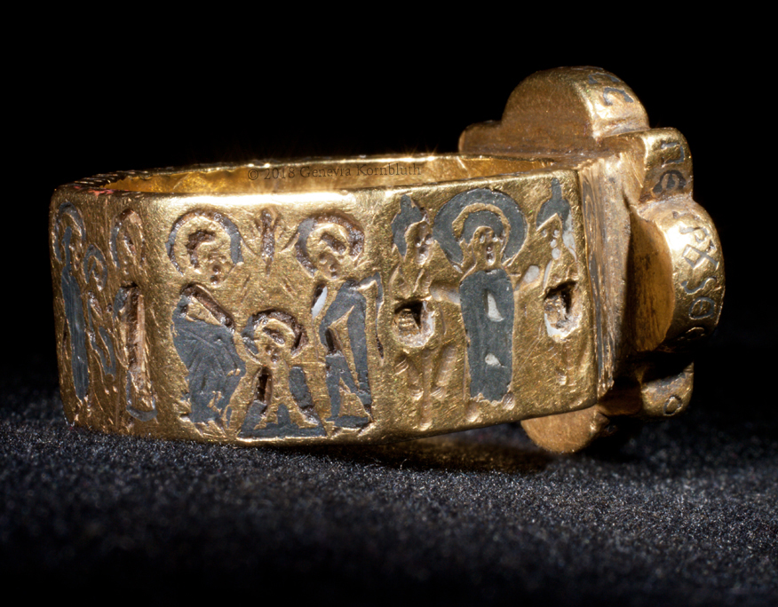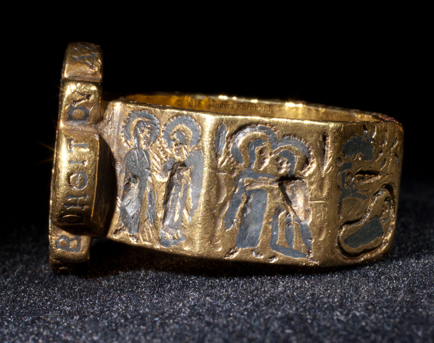 bezel: bride and groom (missing inlay) crowned by Christ and Mary or Ecclesia; inscription: Harmony
