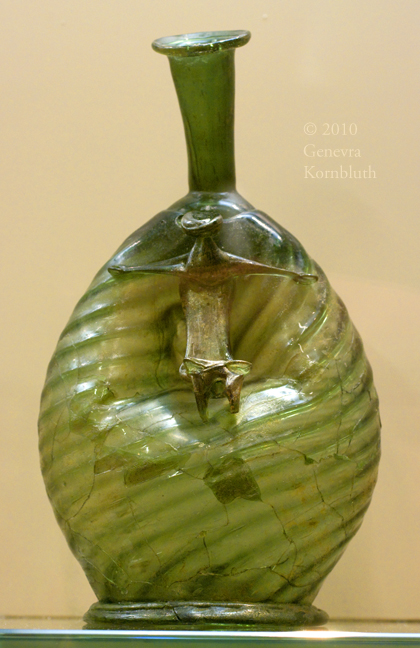 Corpus Christi flask, mold blown and free blown glass, c.1530-50, LMM 58/11