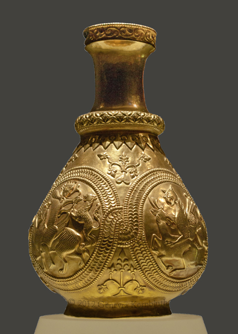 Nagyszentmiklós treasure, gold, 700-750?, KHM VIIb. For more views and companion works see Nagyszentmiklós.