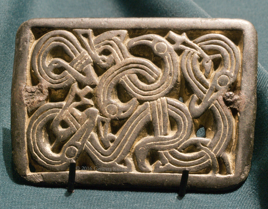 animal interlace plaque converted to a brooch, bronze/gilt, fr. Billingstad, Akershus, 8th c., OHM C29928