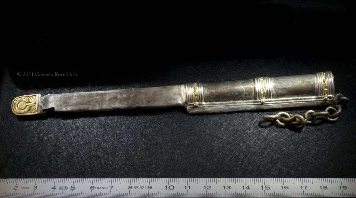 sheath for a knife, silver, with copper alloy chain, from Zamárdi grave 517, 7th c., Kaposvár. For another view see this grave's page.