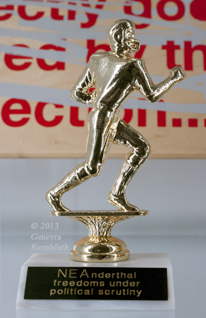 Conrad Atkinson, NEAnderthal, mixed media 1989, UMMA 2004/2.106. Art object copyright: artist/heirs.