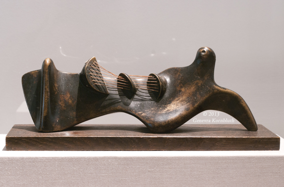 Henry Moore, Stringed Reclining Figure 1939, bronze with string and wood base, UMMA 1968/1.198. Art object copyright: artist/heirs.