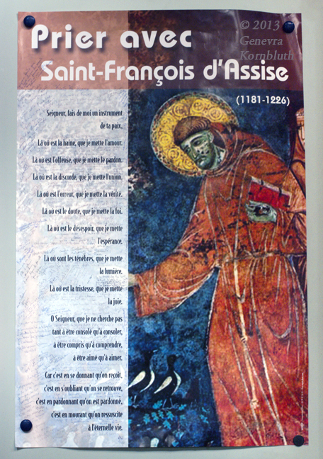 St. Francis (reproduction of 1260-80 fresco, San Francesco, Assisi), poster displayed in Saint-Denis 2011