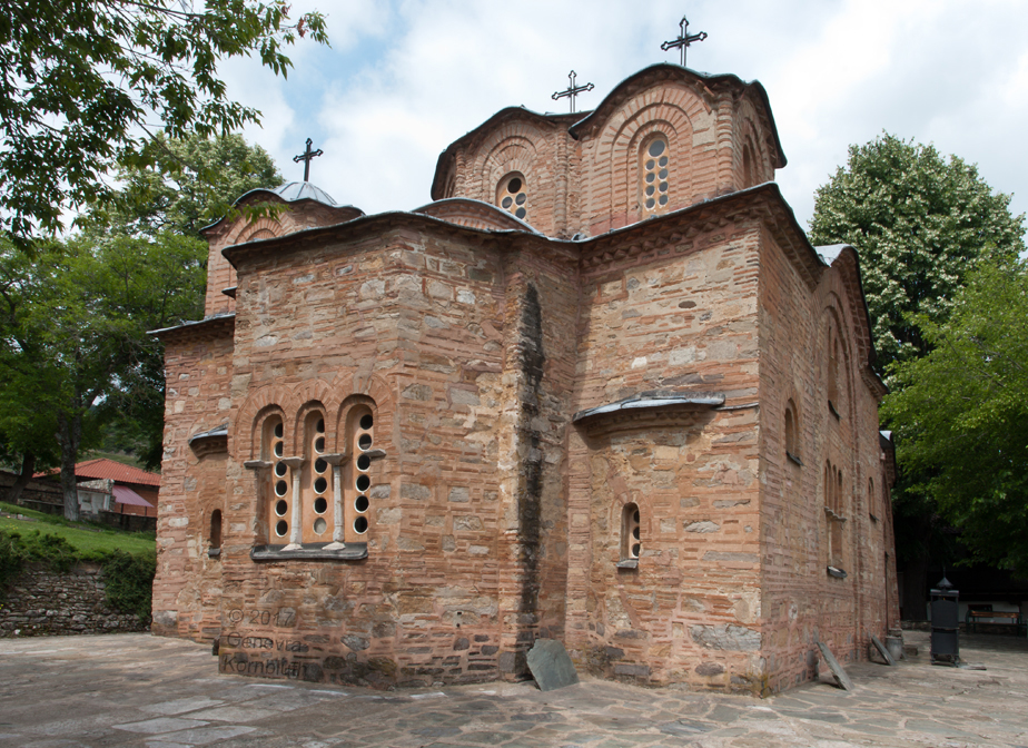 Historical Archive: Church of St. Panteleimon dated 1164 commissioned by Alexios Angelos Komnenos restored 16th century and 1885 Gorno Nerezi, Republic of North Macedonia |