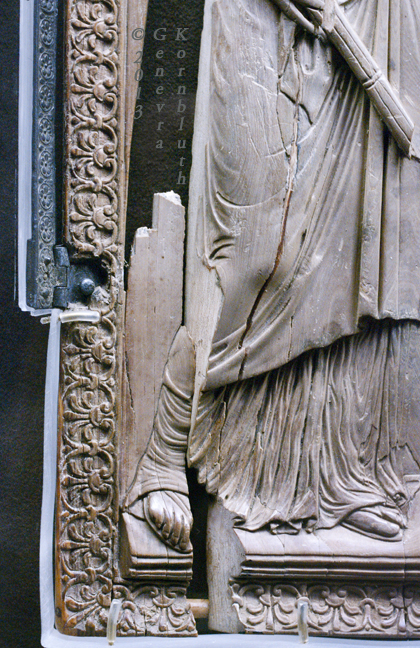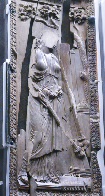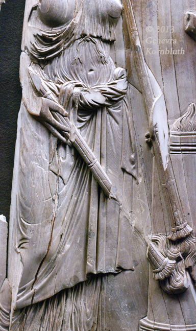 Historical Archive: Nicomachorum ivory panel from Nicomachi-Symmachi diptych, ivory, 29.9 x 12.4 cm Early fifth century. Priestess at the altar of Cybele Musée de Cluny, Paris, Cl. 17048