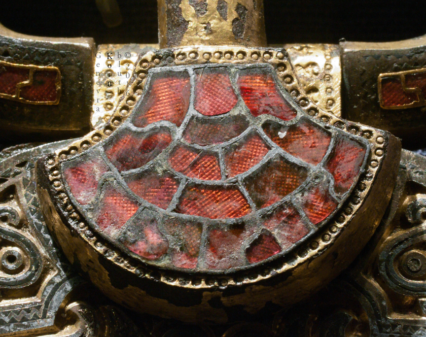 Åker Buckle from Åker, Vang, Hedmark, Norway bronze, silver with gilding and niello, copper, and garnet 11 cm long (4.3 inches) buckle for sword belt, second half of fifth century to around 600 Oslo Historical Museum C4901