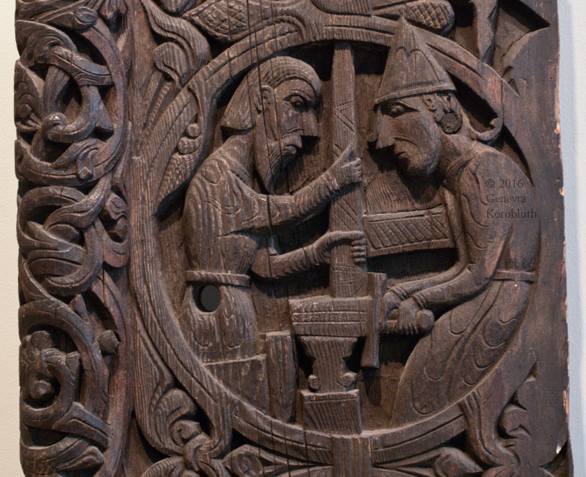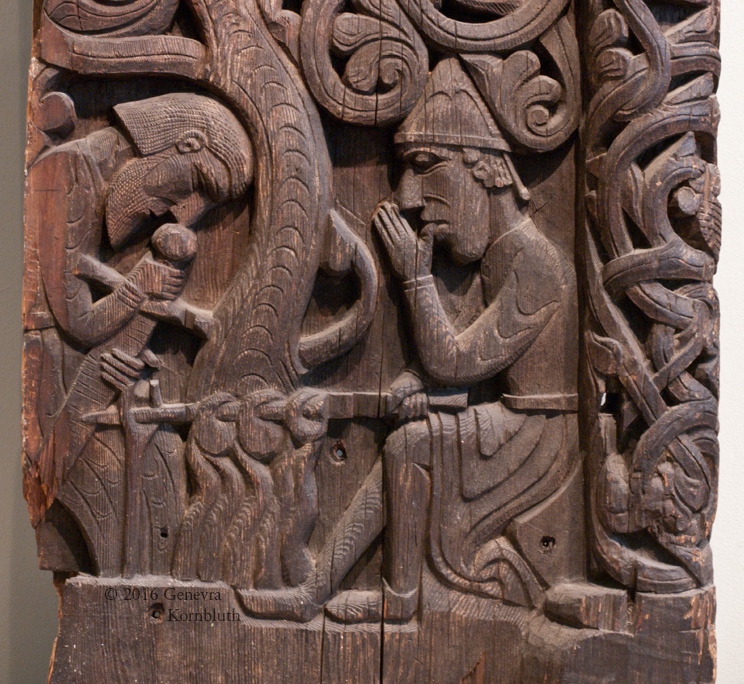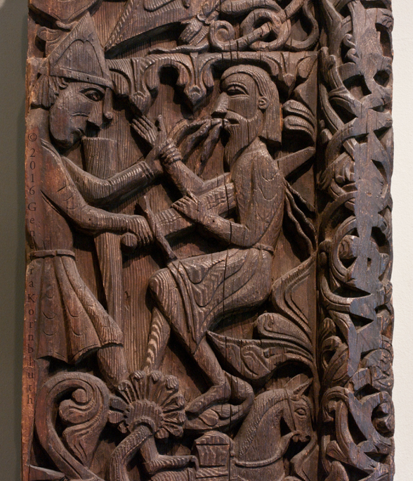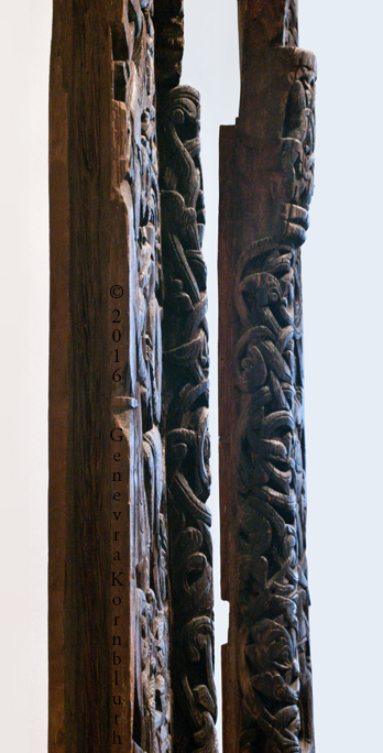 Stave church portal pine wood, 3.5 Alen high (approx. 220 cm, 7 feet 2.6 inches) from Hylestad Parish (Setesdal) stave church at Bjørgum late twelfth/early thirteenth century demolished 1838 Oslo Historical Museum C4321 |