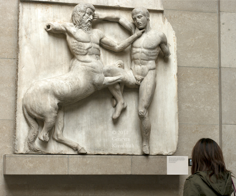 Historical Archive: South Metope XXXI: Centaur and Lapith Marble, 132 cm. 447-432 BCE. Sculpture from the Parthenon, Athens: "Elgin Marbles", British Museum 1816,0610.15