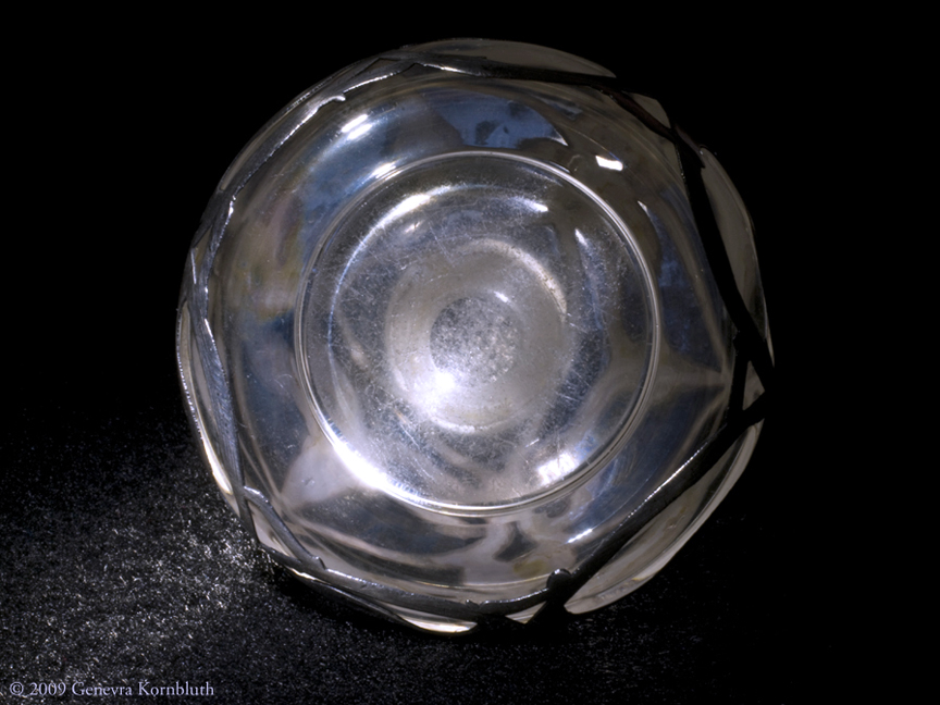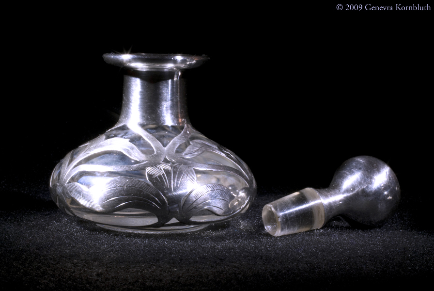 perfume bottle, glass and openwork silver, probably 20th c., p.c.