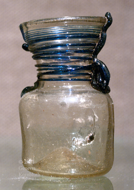 miniature free-blown glass jar with applied decoration, 5th c. Egypt, KM 1968.02.0068