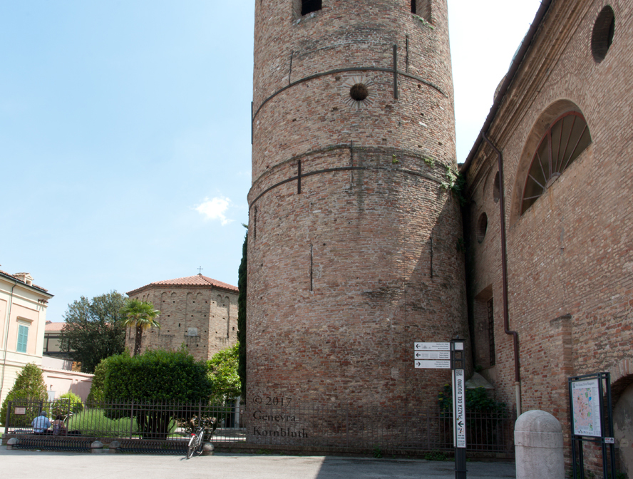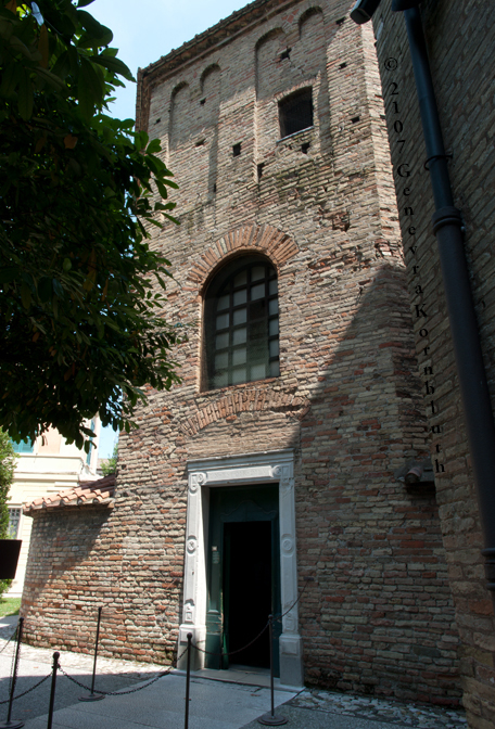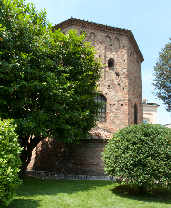 Historical Archive: Neonian (Orthodox) baptistery, Ravenna Exterior initial construction late fourth or early fifth century exterior from above window arches to roof, dome, and interior under Bishop Neon (c. 451-c. 473) exterior below window arches probably restored under Archbishop Theodore (677-691) Campanile (bell tower) 10th c. Cathedral on the site of the Basilica Ursiana: Giovanni Francesco Buonamici 1734-45 |