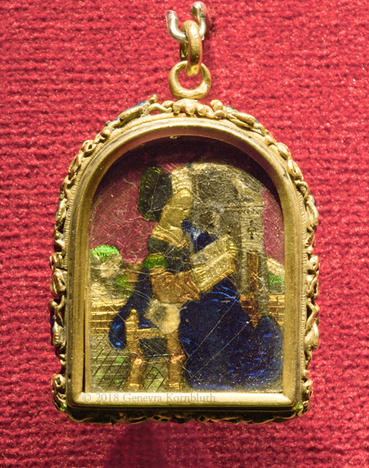St. Barbara reliquary pendant, France or Netherlands 1495-1505, gold and enamel, AIC 1938.1179