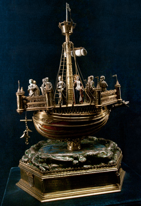 Nef of St. Ursula, carnelian/gold/silver gilt/copper/enamel 1500, which has its own page