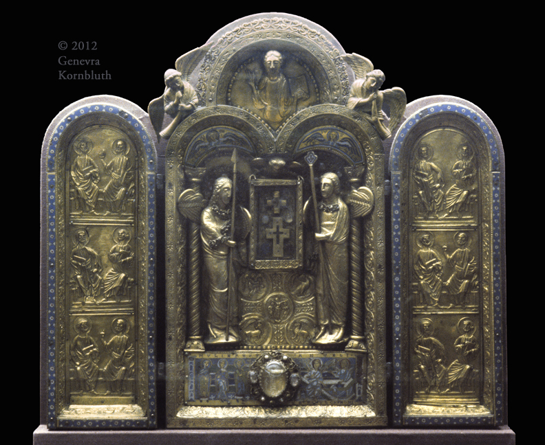 Reliquary triptych, 1850-61: copper, copper gilt, enamel, gems on wood. V&A 7947-1862
