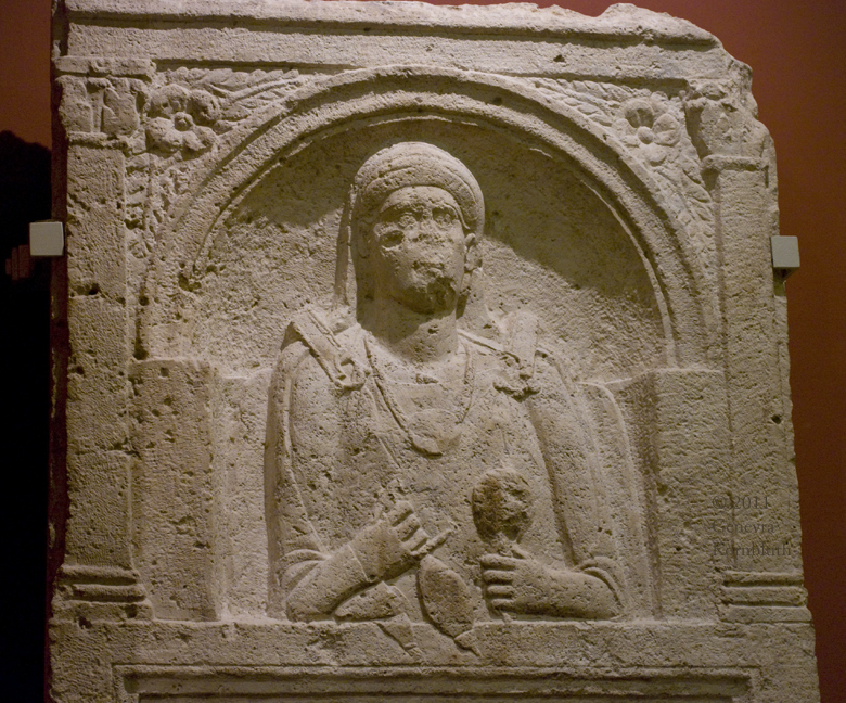 trophy and captive barbarian, funerary relief from Este (Italy), limestone, early 1st c. CE, MFAB 4830