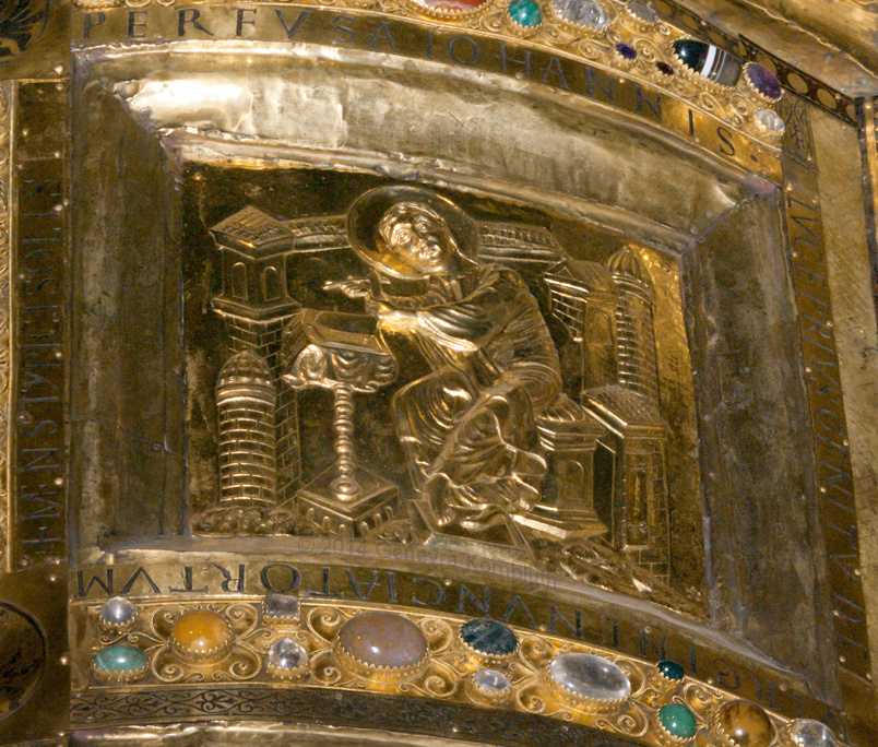 Lisbjerg Altar frontal/retable/arch c.1135-50, gilded copper, NMD D287. This work has its own page with another John in full figure.