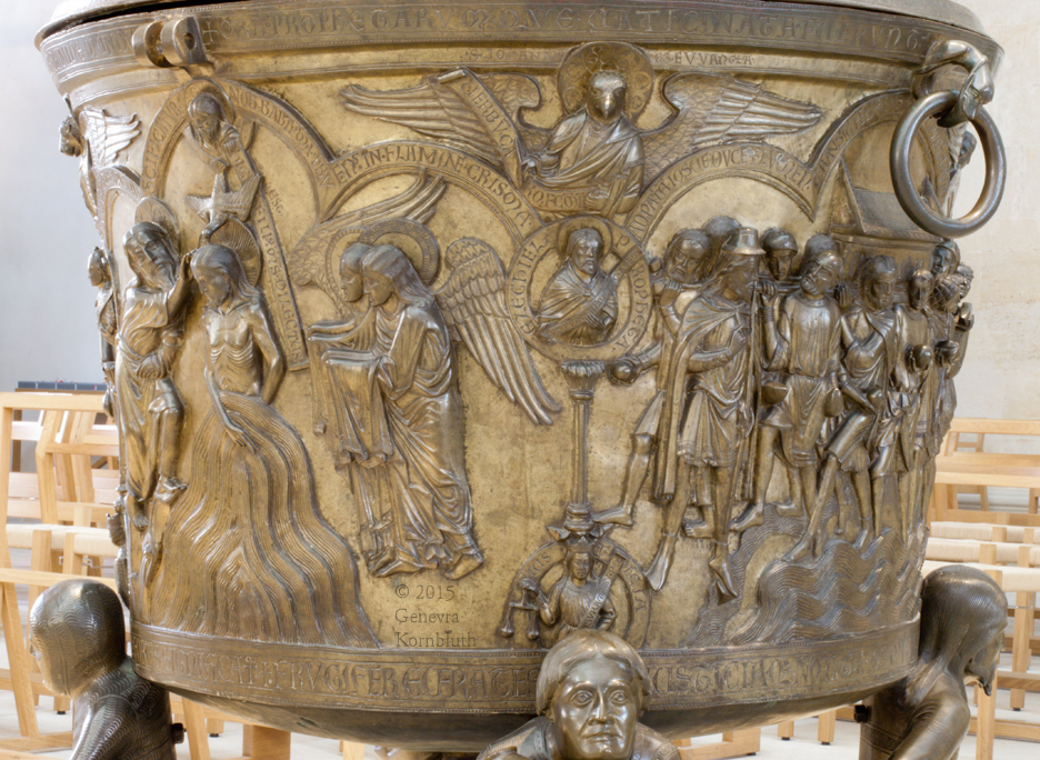 John symbol at top: font, copper alloy c.1226, Hildesheim Cathedral. This work has its own page.