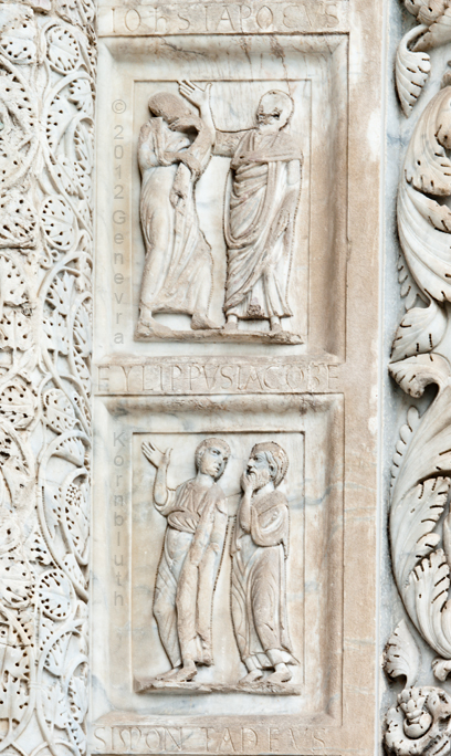 upper left: portal sculpture early 13th c., Pisa baptistery, which has its own page, in cathedral complex