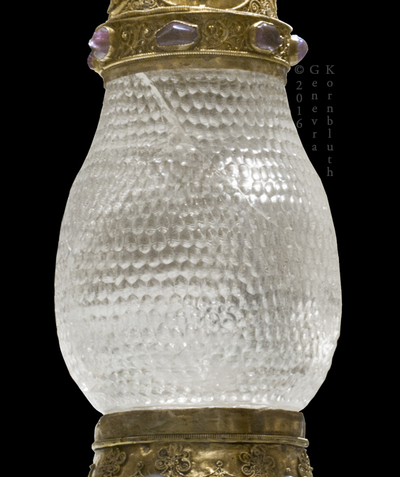 Eleanor Vase: crystal vessel Sasanian sixth/seventh century, or Islamic; metalwork 1137-47. Louvre MR 340. This work has its own page.