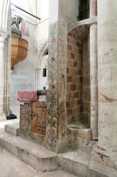 Chapelle Molitor, north transept arm, barrier to crossing and view into crossing and choir. Painting c.1470.