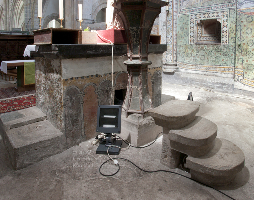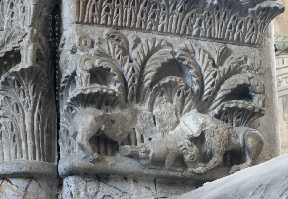 apse: lion support for steps, late 14th-early 15th c.