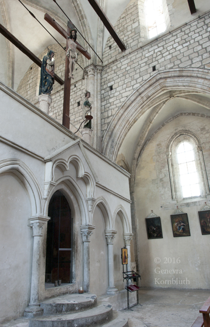 walkway across upper nave for watchmen on exterior fortifications
